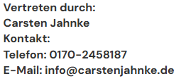 Der Nutzung von im Rahmen der Impressumspflicht veröffentlichten Kontaktdaten durch Dritte zur Übersendung von nicht ausdrücklich angeforderter Werbung und Informationsmaterialien wird hiermit ausdrücklich widersprochen. Die Betreiber der Seiten behalten sich ausdrücklich rechtliche Schritte im Falle der unverlangten Zusendung von Werbeinformationen, etwa durch Spam-Mails, vor.